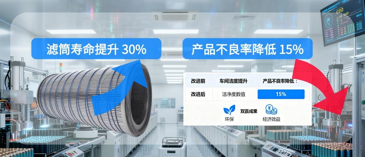 该方案在国内某龙头电池产线全面部署后,各工段排放浓度均稳定达标,车间洁净度大幅提升,达到行业领先水平,有效保障电池产品一致性与安全性能,助力客户将产品不良率降低15%,实现环保与经济效益双赢。