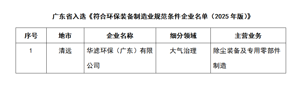 近日,广东省工业和信息化厅正式发布《广东省入选环保装备制造业规范条件企业名单(2025年版)》,和记娱乐官网环保(广东)有限公司凭借在大气治理领域的技术实力与产品质量,成功入选该名单。